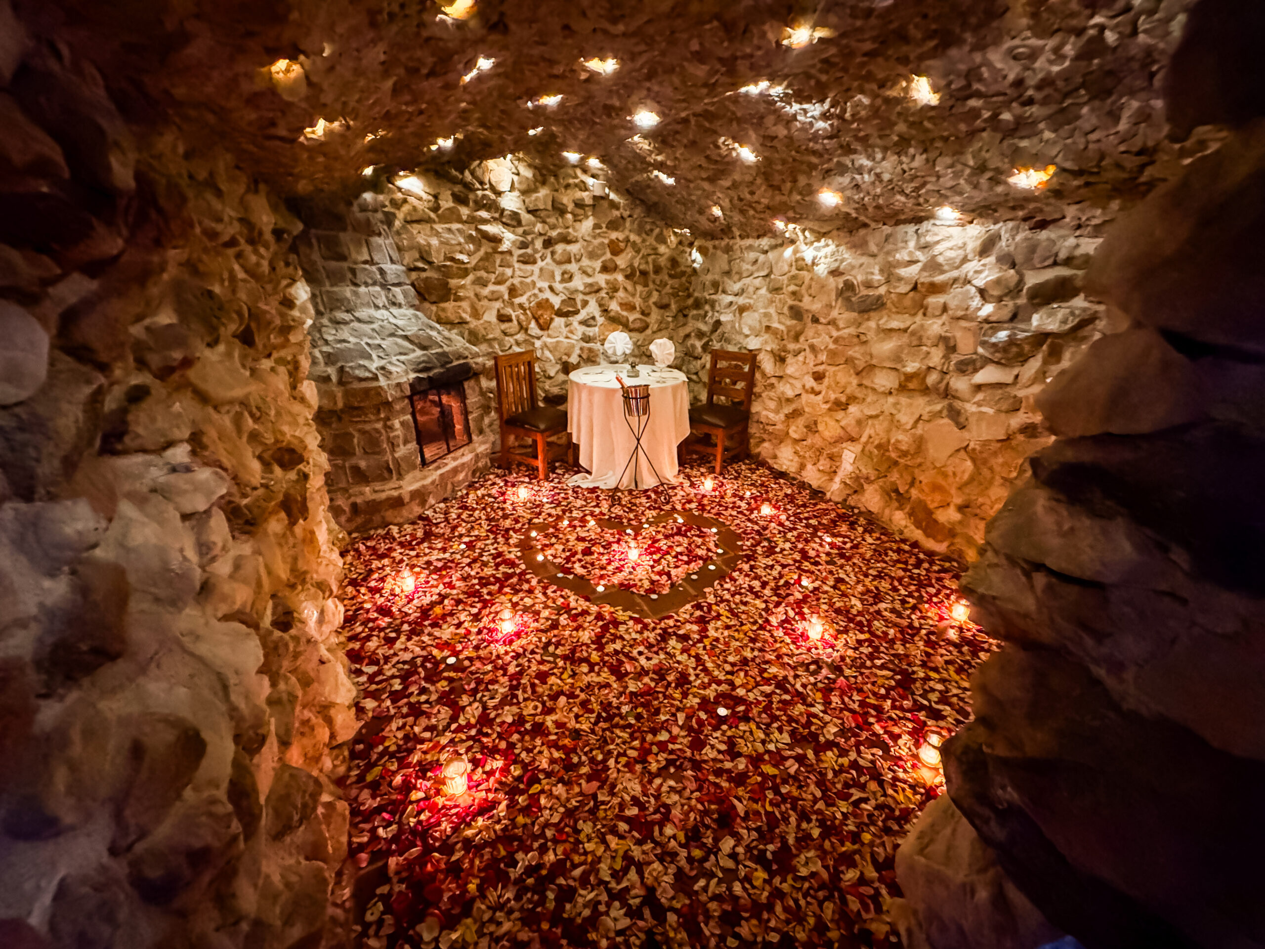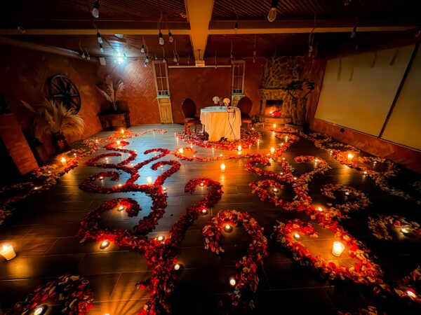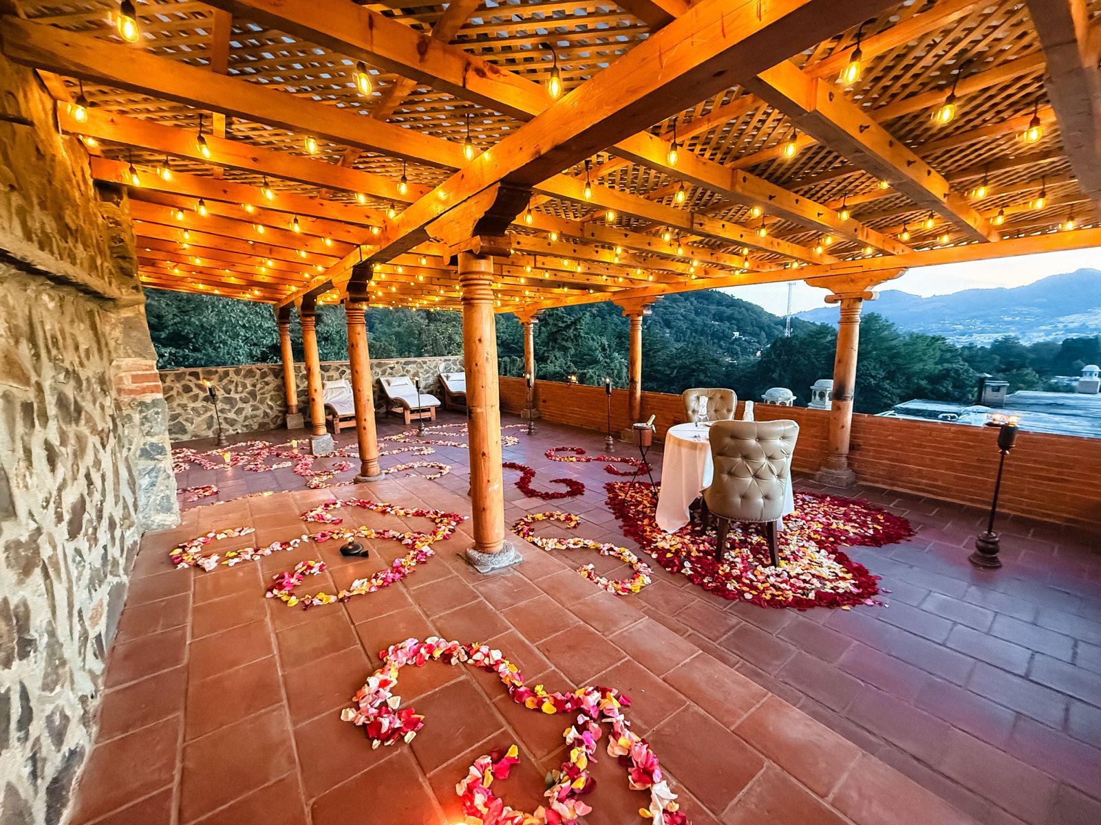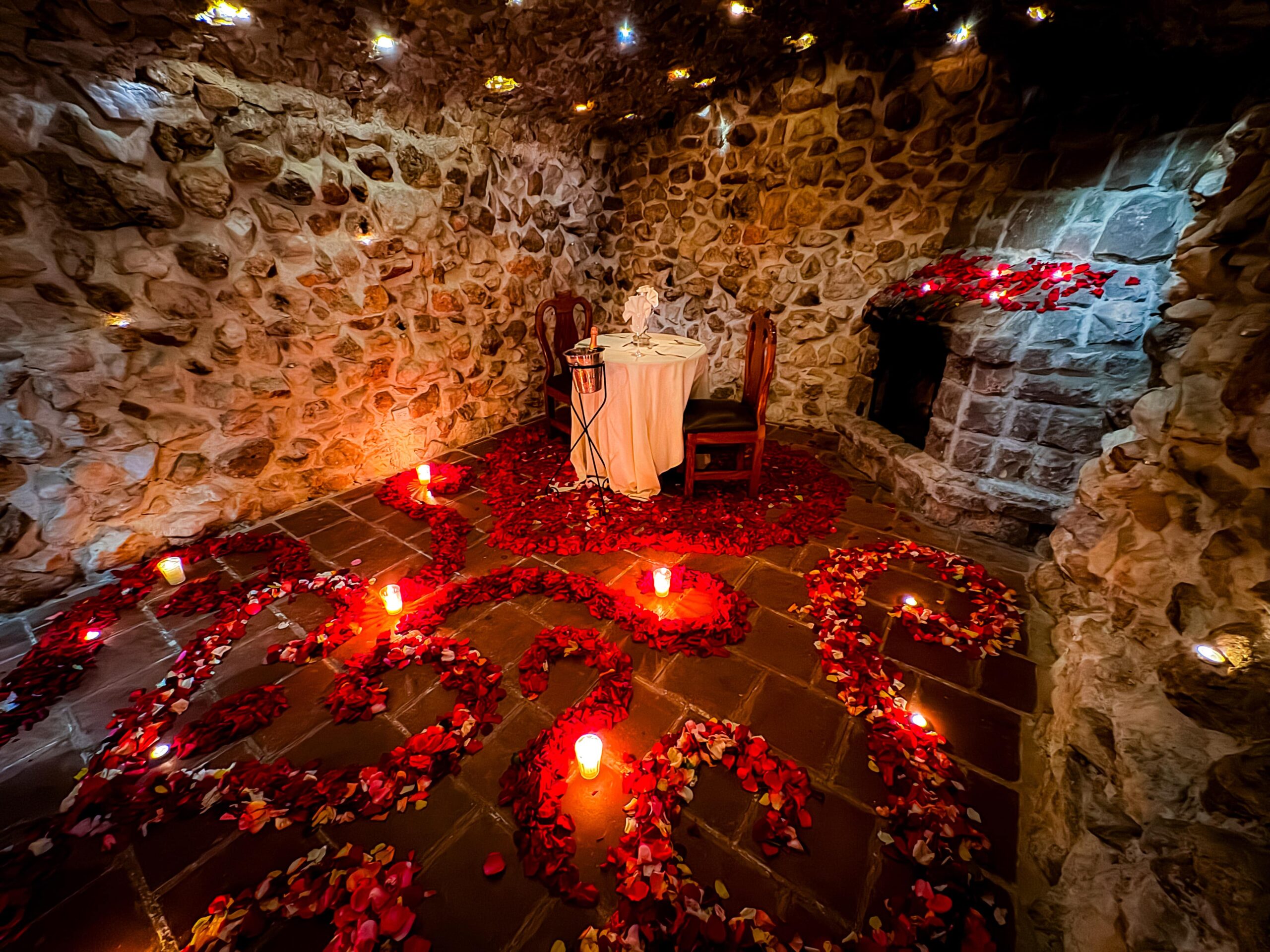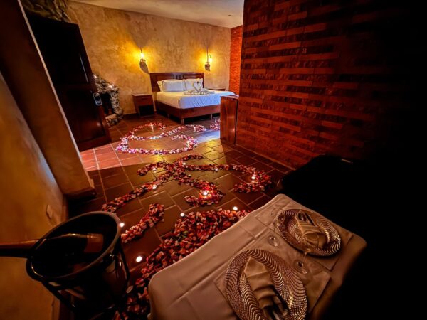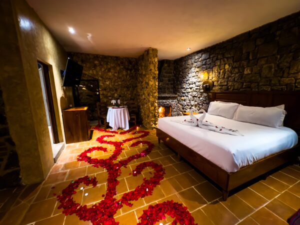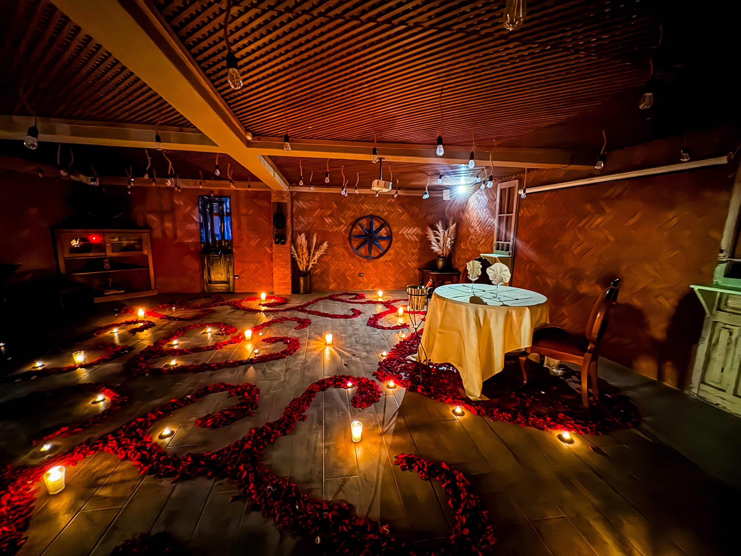 1 Cena romántica privada (Amor Diamante )dentro de la suite, con una decoración única y original que dejarás sorprendida a tu pareja con mas desde 50 velitas y una decoración exclusiva.