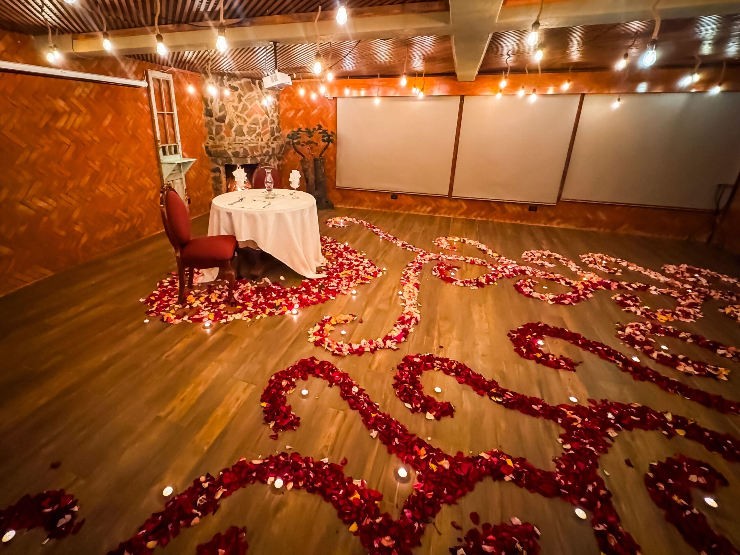 1 Cena romántica privada (Amor de oro )dentro de la suite, con una decoración única y original que dejarás sorprendida a tu pareja.