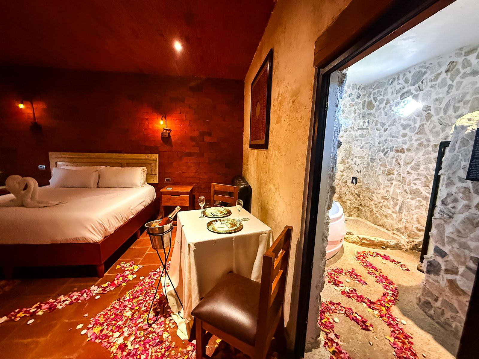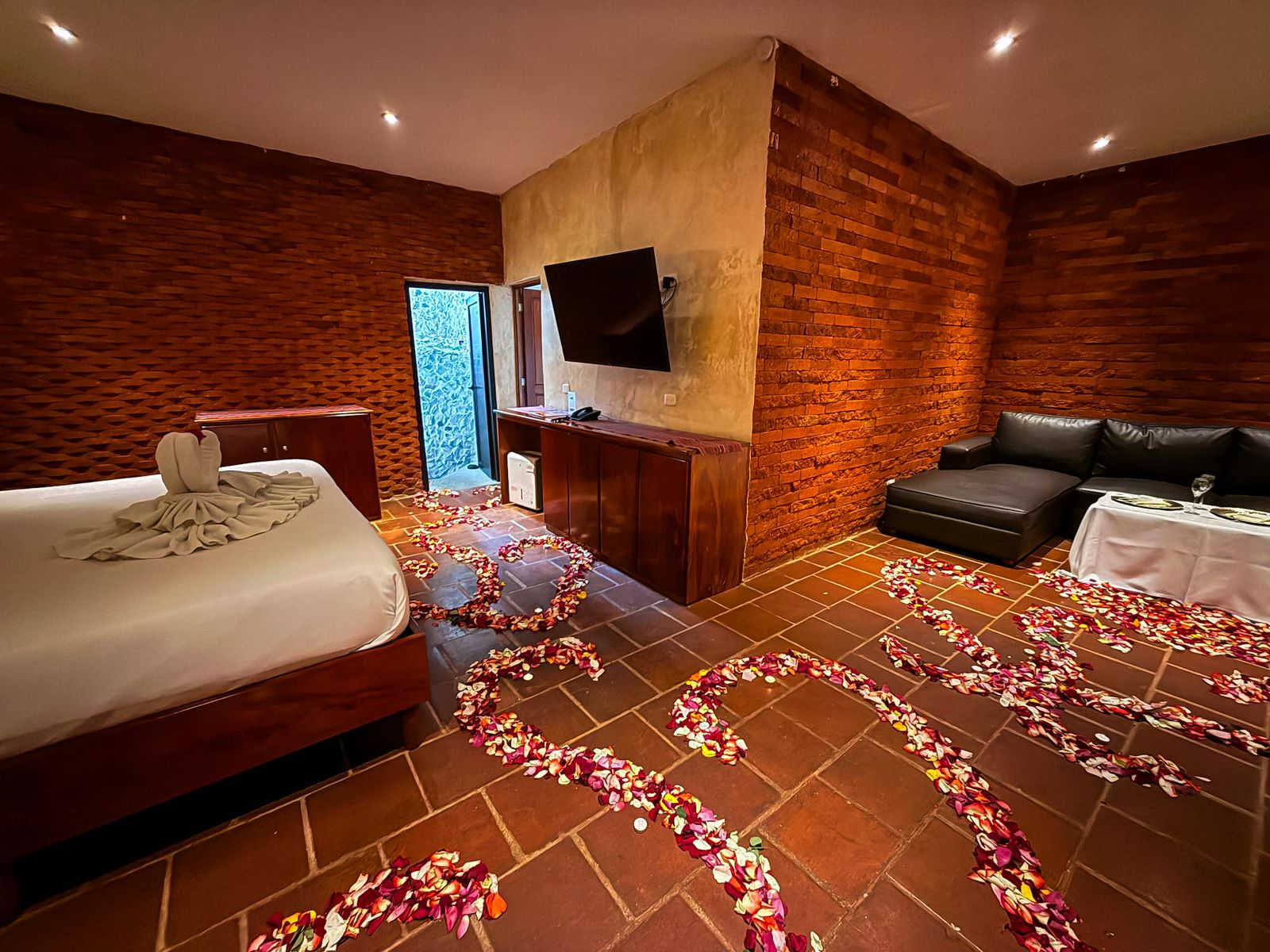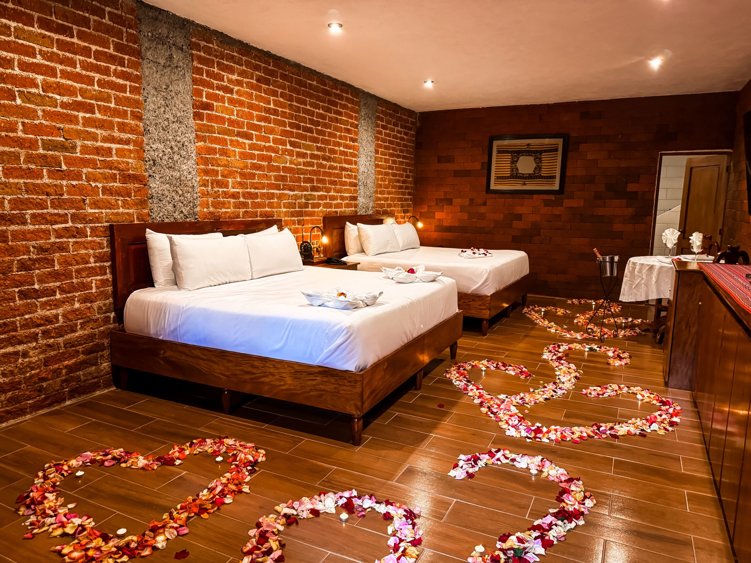 ✓ 1 Cena romántica (Amor Incondicional) privada dentro de la suite, con una decoración única y original que dejaras sorprendida a tu pareja.