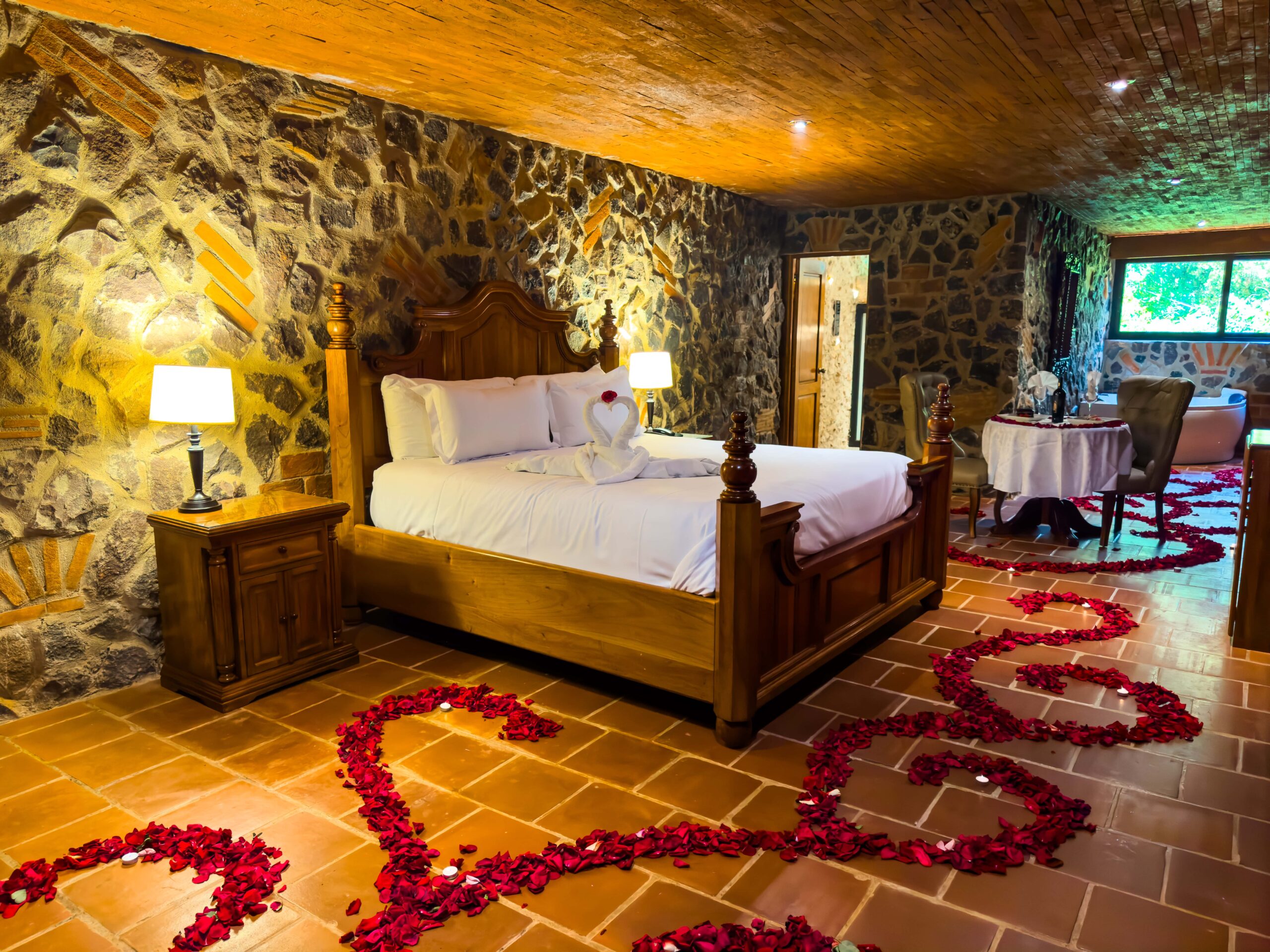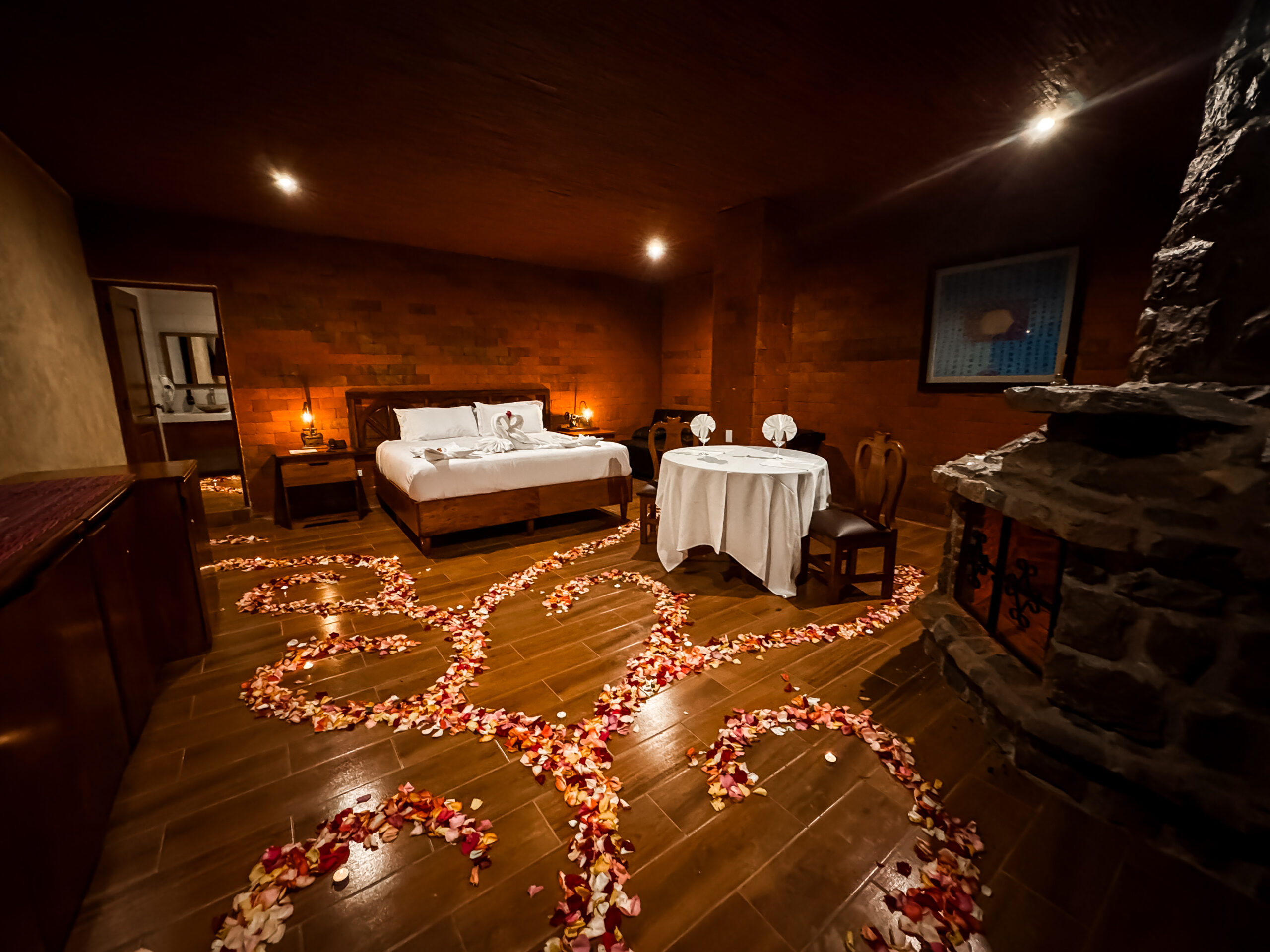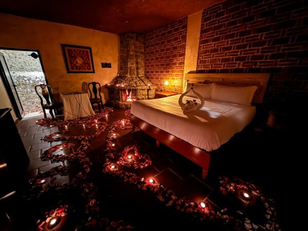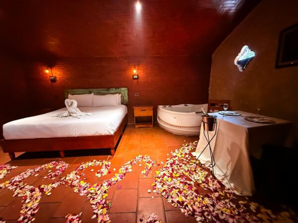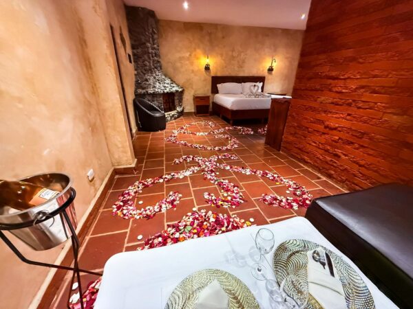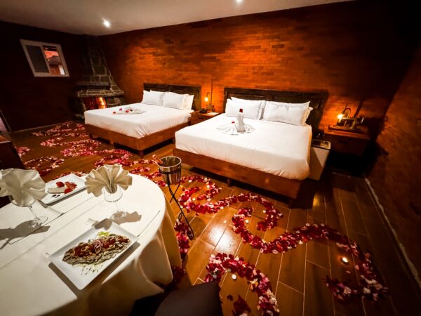 Disfruta al máximo tu escapada romántica en nuestras suites coloniales con detalles en cada espacio. La velada que deseas está aquí en una hermosa cena déjanos los detalles en nuestras manos para que tu solo disfrutes de una velada inolvidable, con este paquete mas completo con una decoración única, cena los tres tiempos, masajes, faciales todo para que salgas totalmente renovado en mente y corazón.