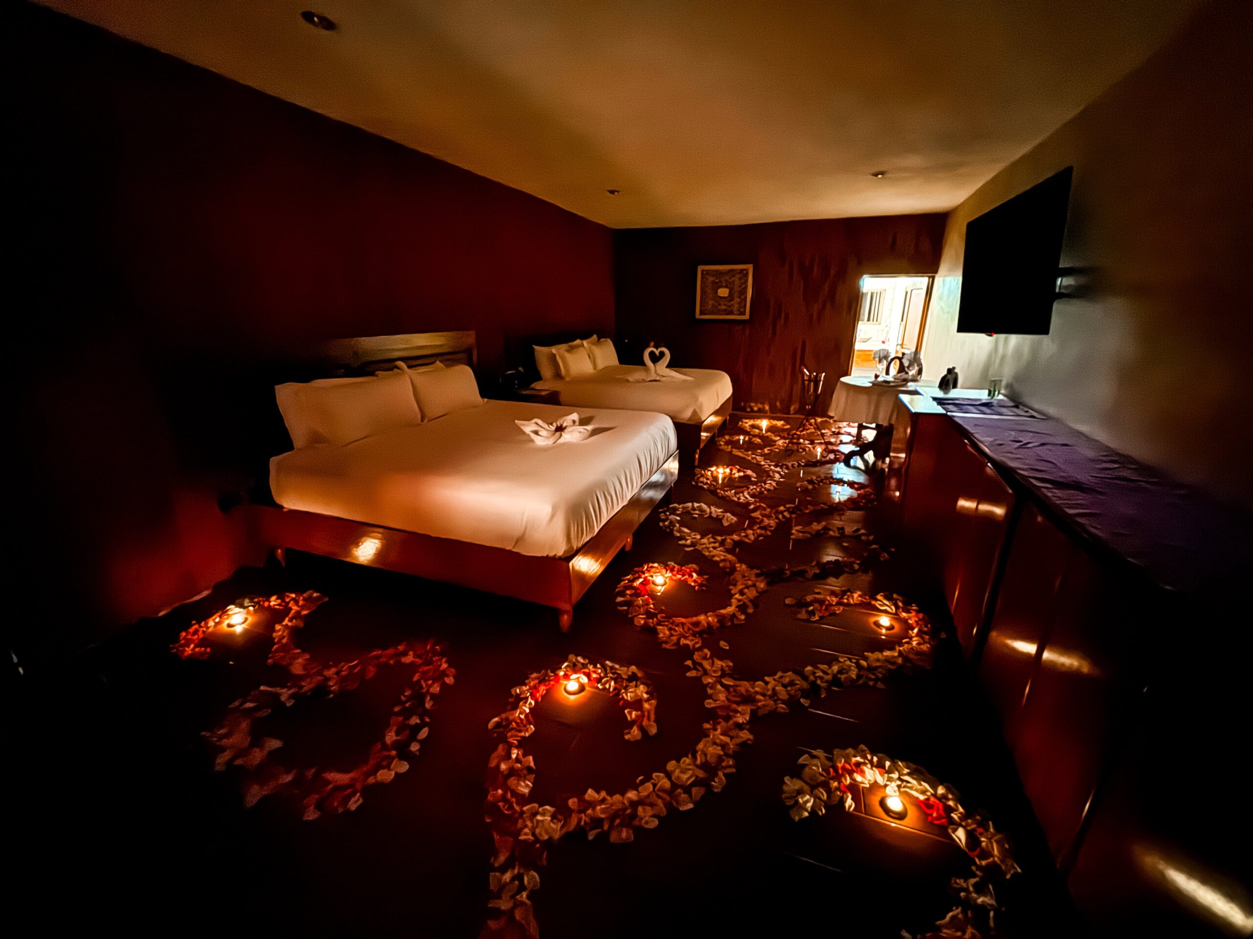 ✓ Cena romántica (Amor Diamante) privada dentro de la suite, con una decoración única y original que dejaras sorprendida a tu pareja mas un camino Especial hacia la habitación, una experiencia única.