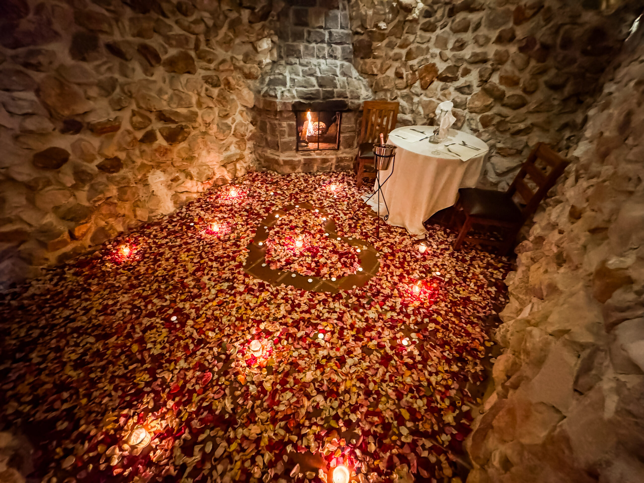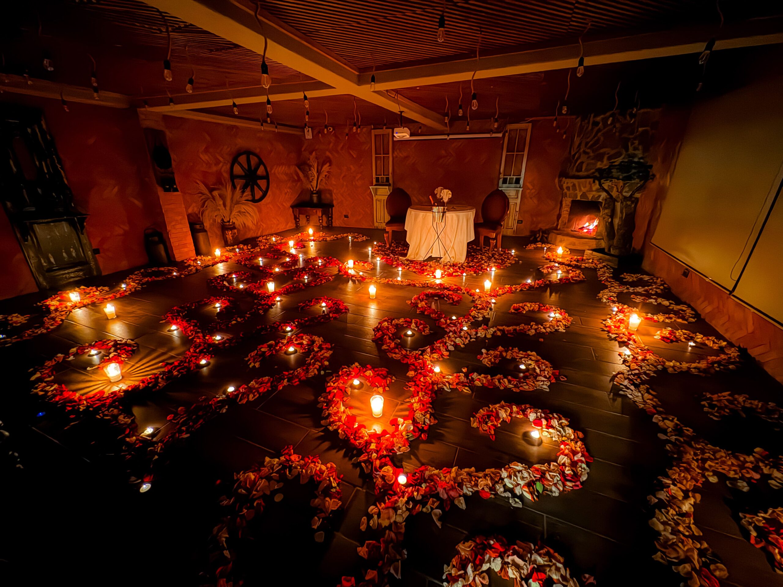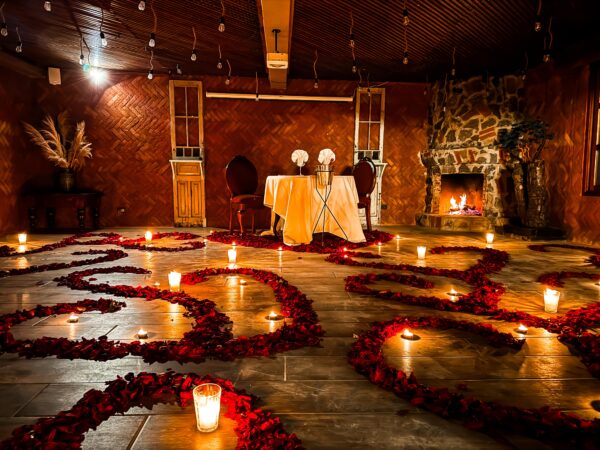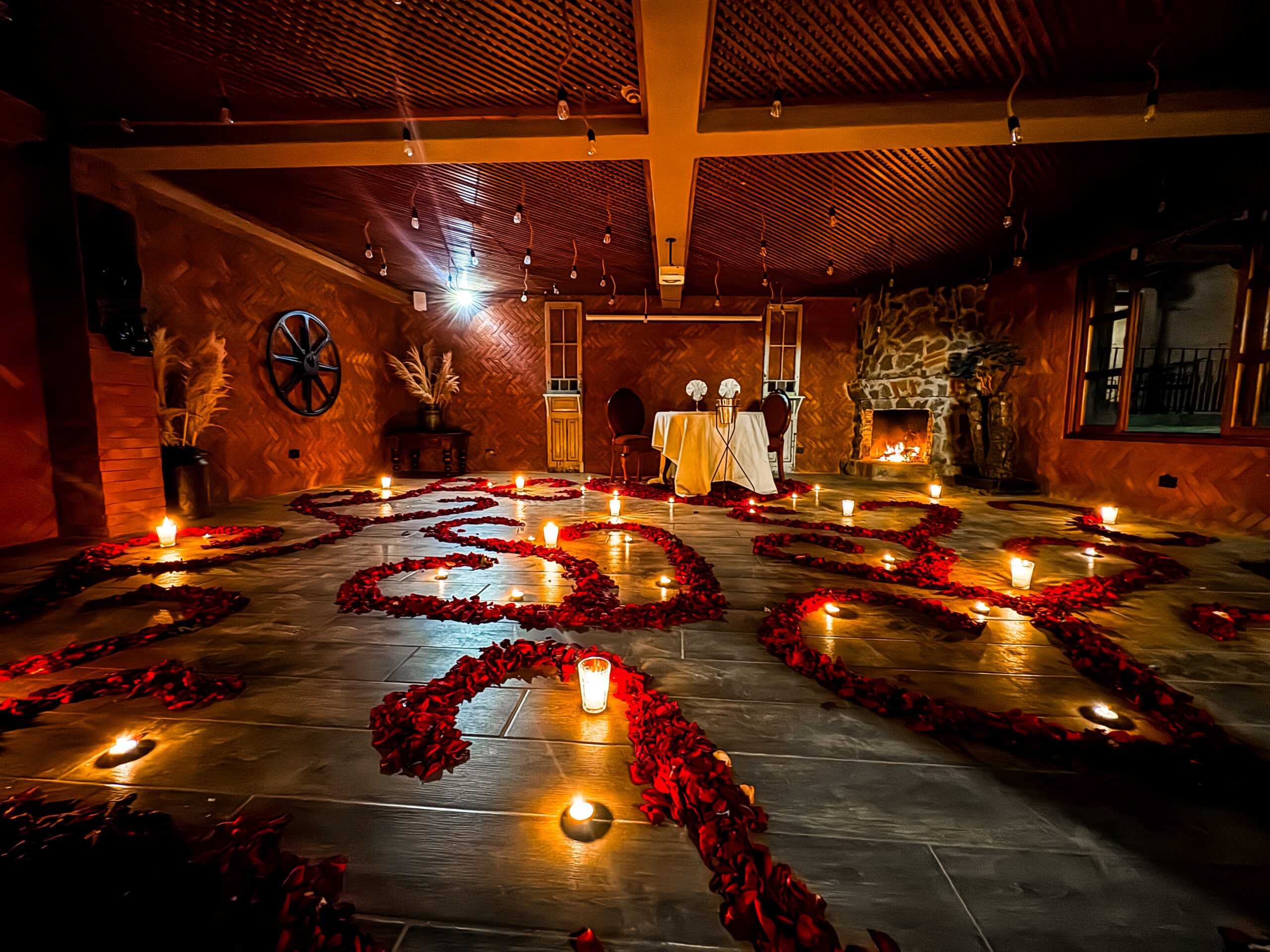 Cena romántica (Amor Diamante) privada dentro de la suite, con una decoración única y original que dejaras sorprendida a tu pareja mas un camino Especial hacia la habitación, una experiencia única.