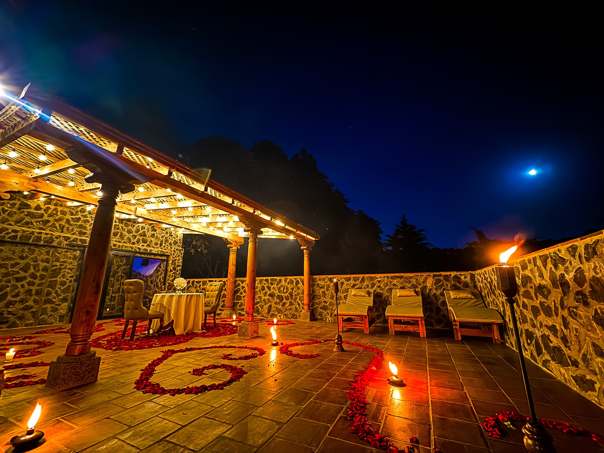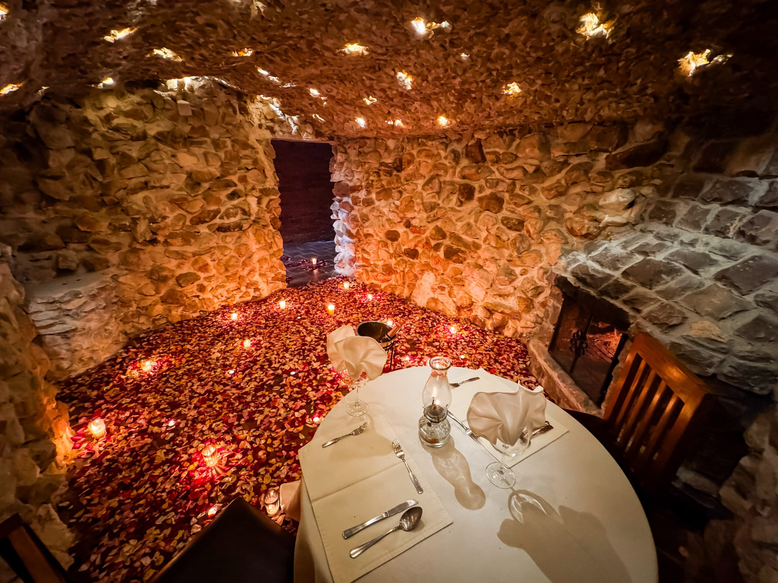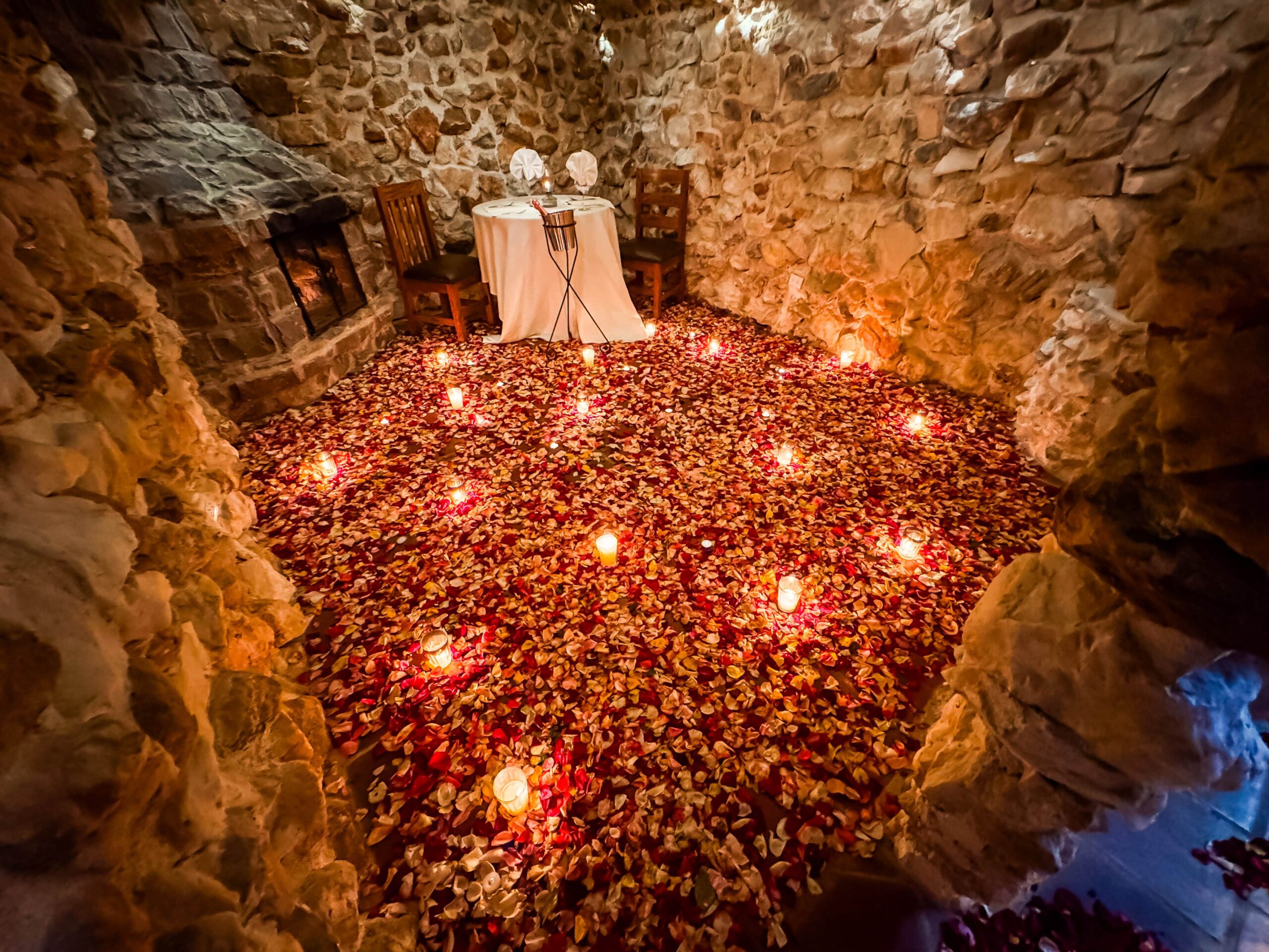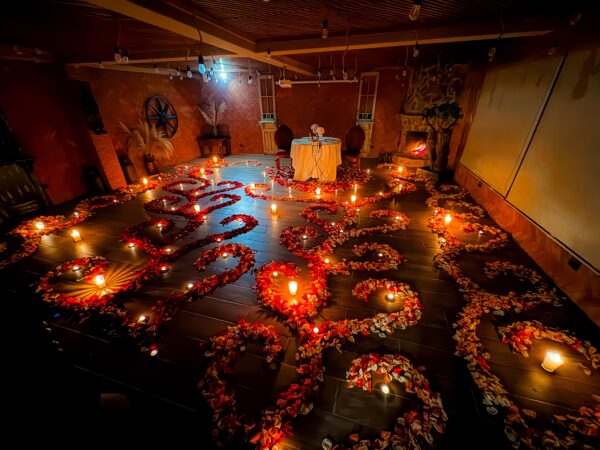 Cena romántica (Amor Diamante) privada dentro de la suite, con una decoración única y original que dejaras sorprendida a tu pareja mas un camino Especial hacia la habitación, una experiencia única.