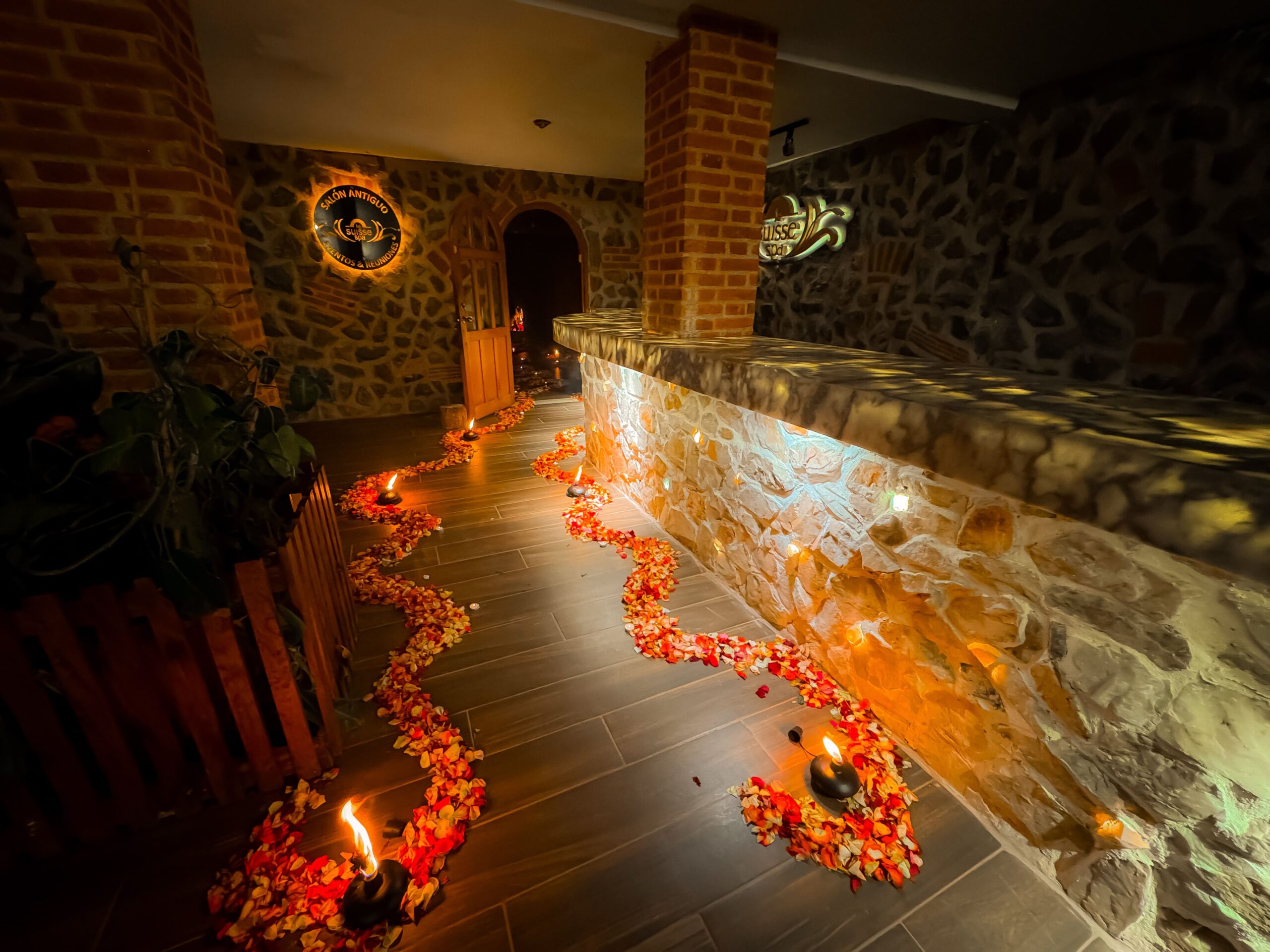 Disfruta al máximo tu escapada romántica en nuestras suites coloniales con detalles en cada espacio.  La velada que deseas está aquí en una hermosa cena déjanos los detalles en nuestras manos para que tu solo disfrutes de una velada inolvidable, con este paquete mas completo con una decoración única, cena los tres tiempos, masajes, faciales todo para que salgas totalmente renovado en mente y corazón.