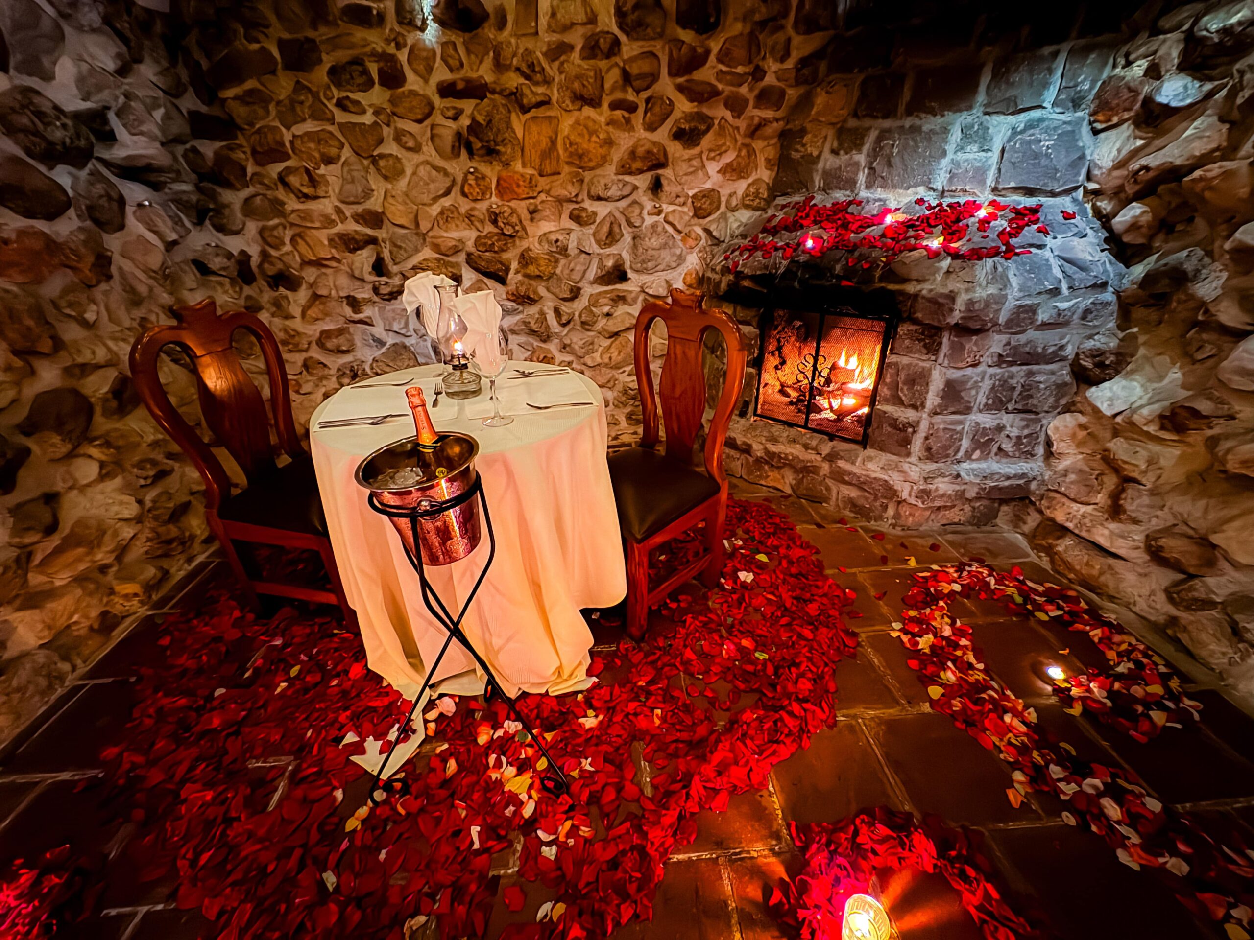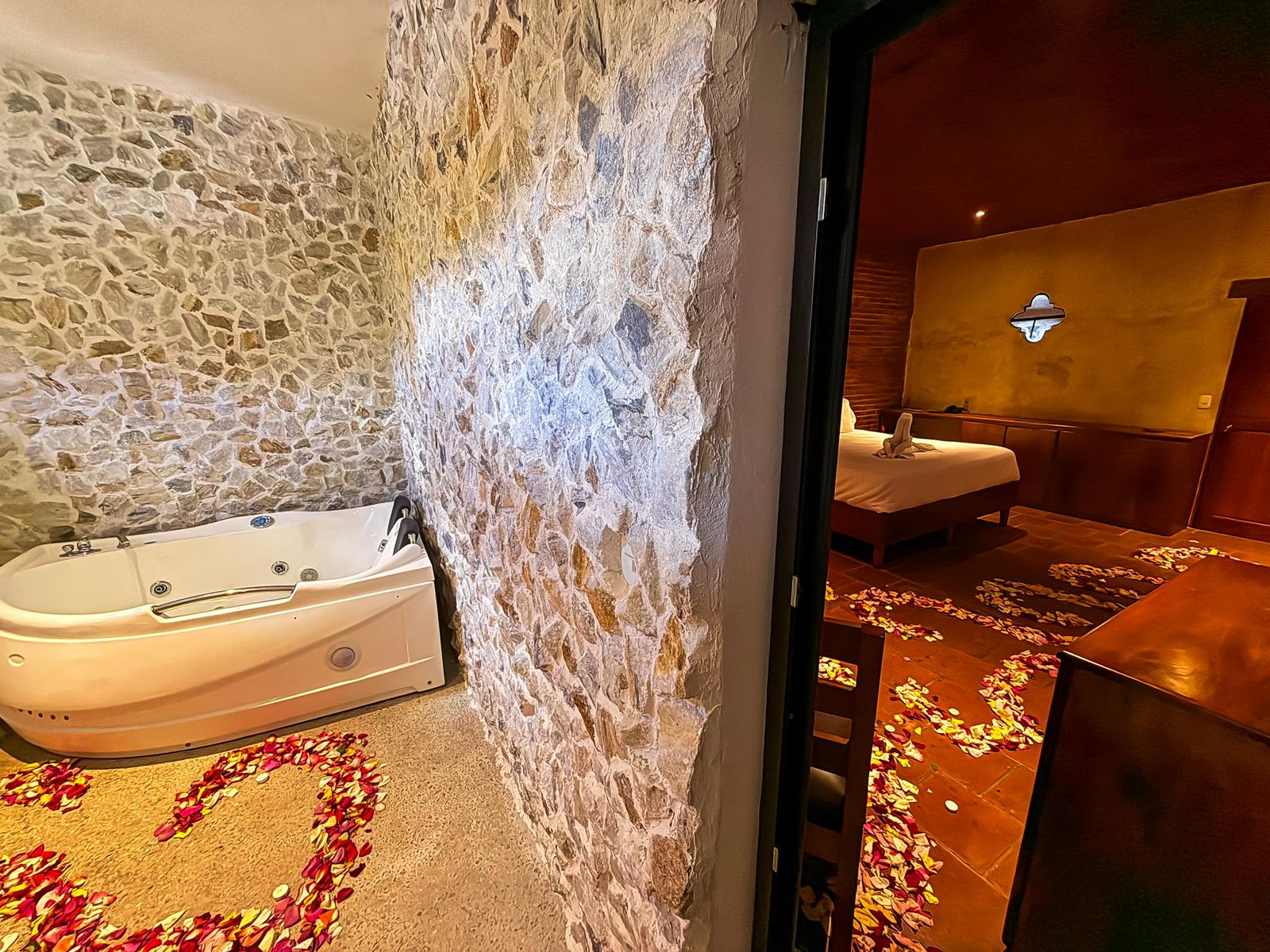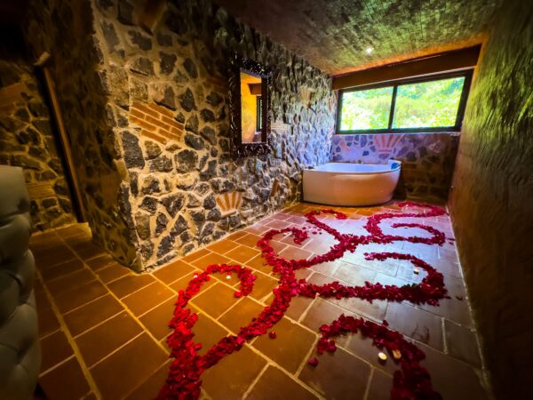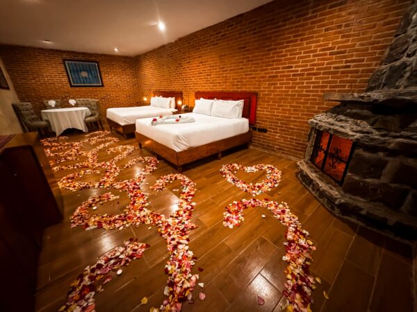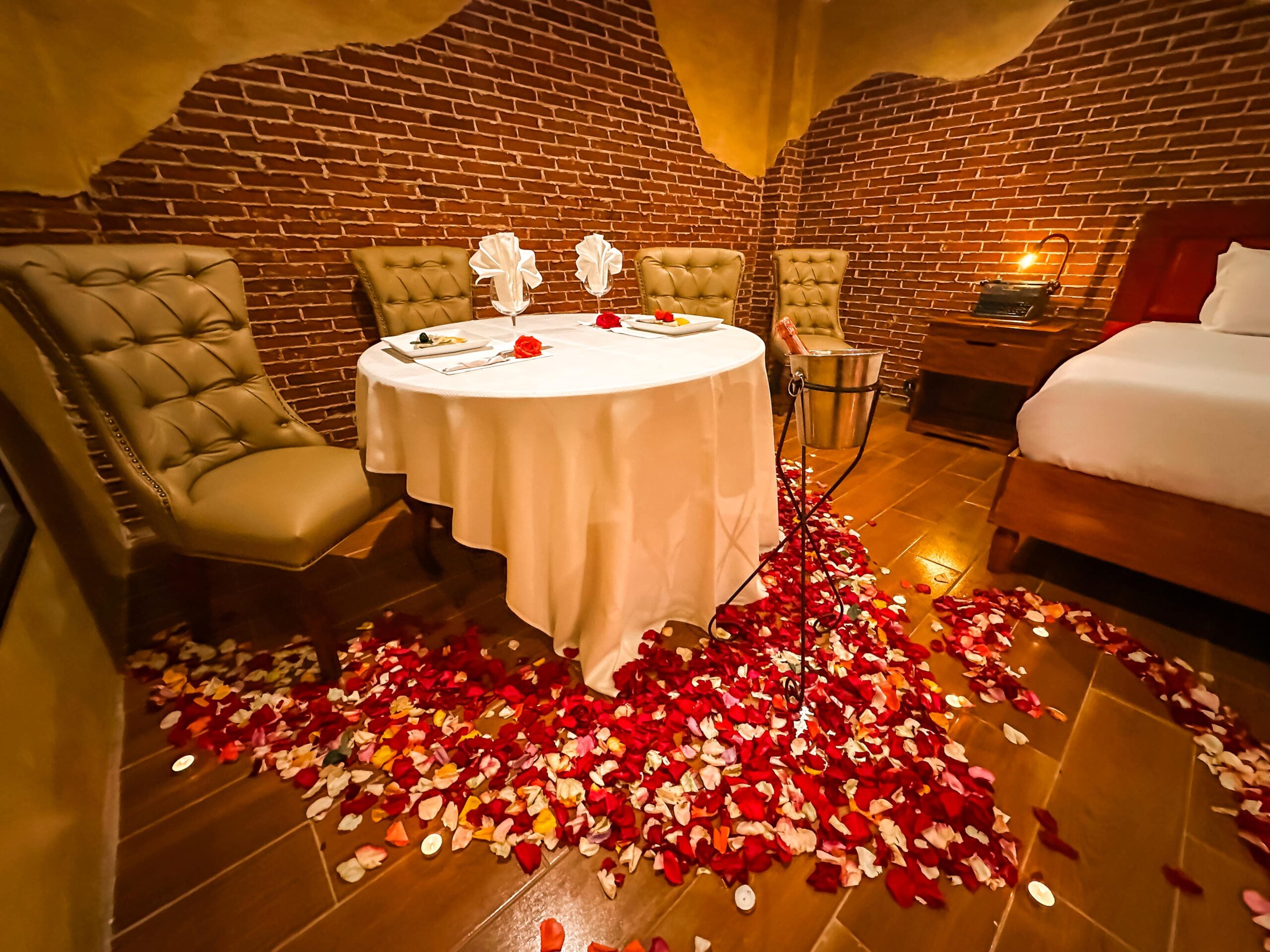 ✓ 1 Cena romántica de Oro privada dentro de la suite, con una decoración única con el doble de pétalos y velas para que sea una velada y decoración única y especial que dejaras sorprendida a tu pareja.